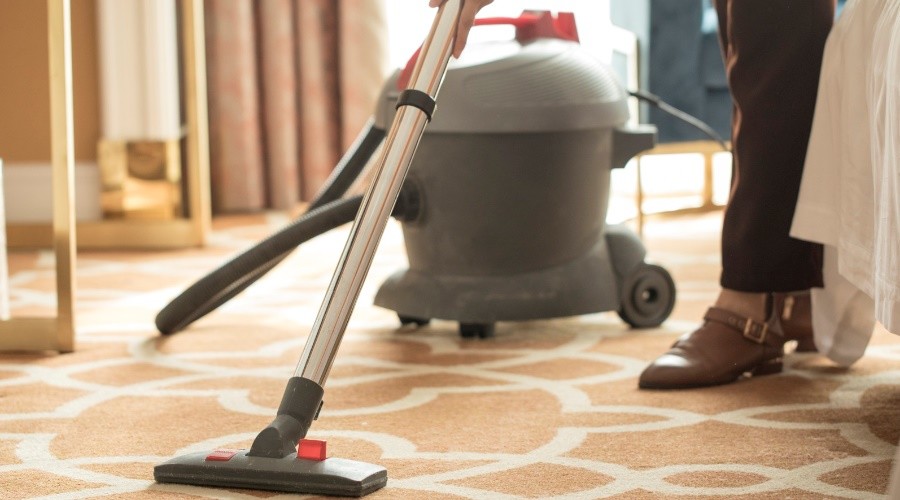 用吸塵器全面吸塵,稀釋清潔劑,也可注入水箱。在地毯上全面噴灑清潔劑,作用10-15分鐘后,污漬脫離纖維,用洗地機(jī)抽洗,操作向后行走而使每操作行有一部分重疊,最少經(jīng)過(guò)兩次抽洗,在清洗地毯的同時(shí),用吸水機(jī)吸凈已洗完的地毯,讓地毯完全干透,為加快地毯干透,可開動(dòng)地毯吹干機(jī)。